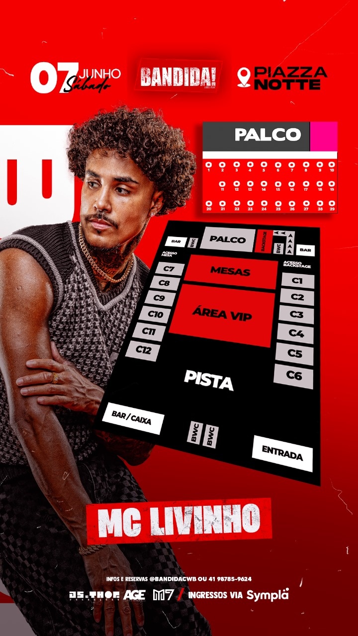 MC Livinho vem aí pra comandar a noite no aniversário de uma das labels mais desejadas de Curitiba — e essa celebração promete ser inesquecível. No dia 07 de junho, o Piazza Notte será palco de um show que vai além da sua imaginação: muito funk, energia lá no alto e uma pista pronta pra ferver do início ao fim.