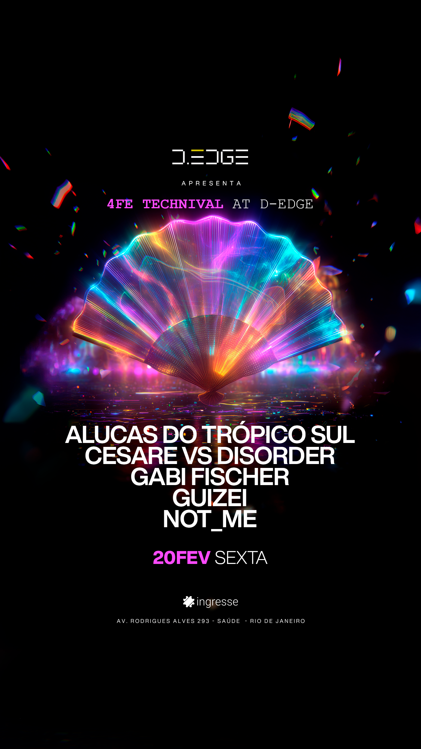 Aniversariante de Fevereiro, venha comemorar o seu aniversário no D-EDGE RIO - 4Fe Technival que vai acontecer no D-Edge Club no Rio de Janeiro/RJ, no endereço Avenida Rodrigues Alves, 293.