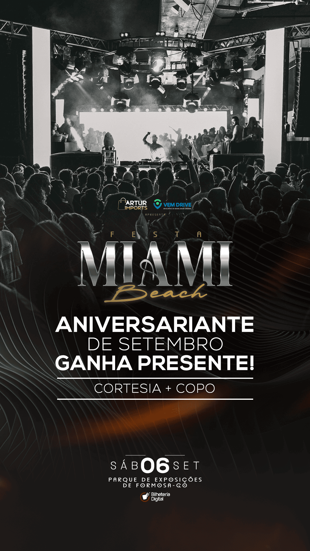 Aniversariante de Setembro, venha comemorar o seu aniversário na Miami Beach que vai acontecer no Parque de Exposições em Formosa/GO.