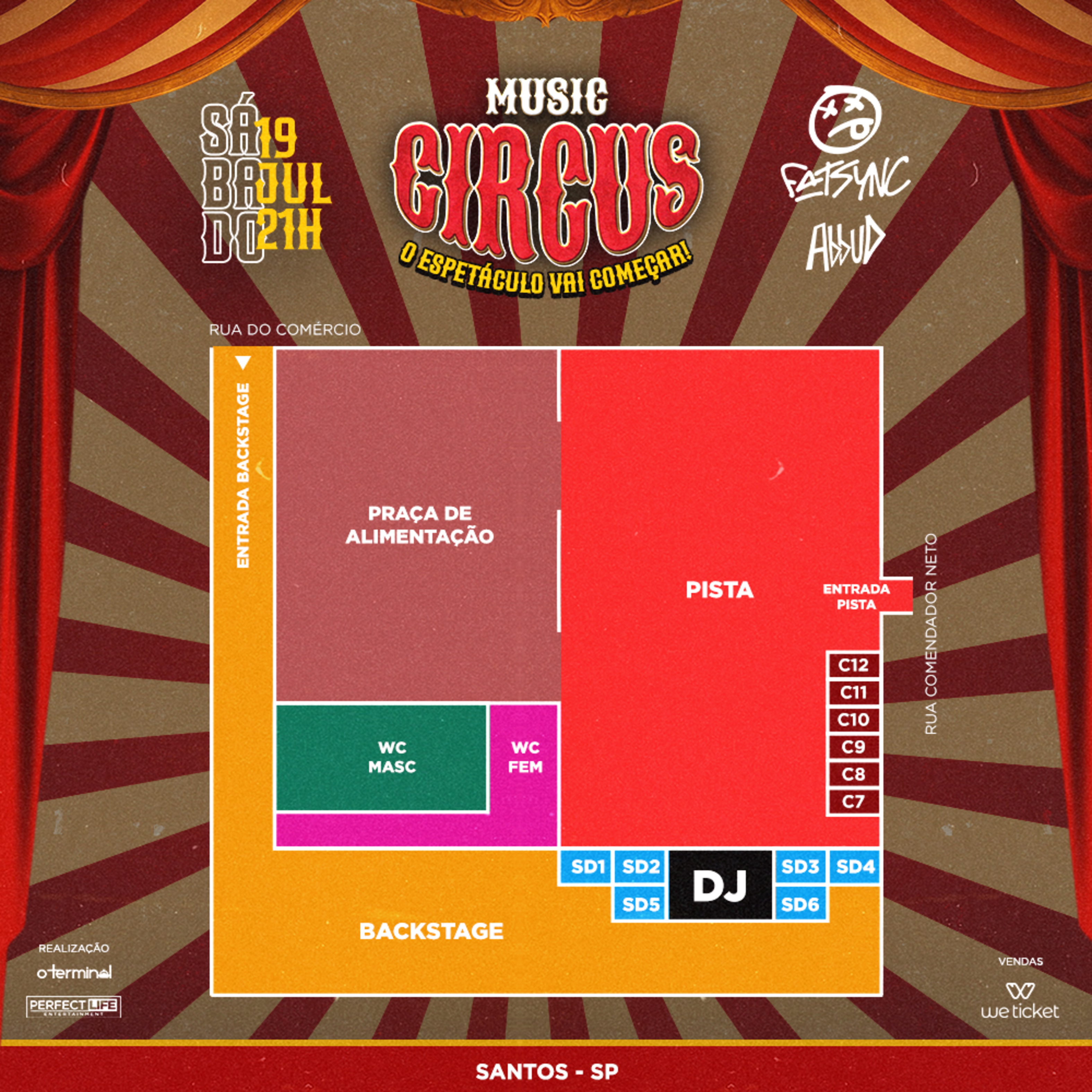 No dia 19 de julho, Santos recebe uma verdadeira imersão sensorial com o espetáculo Music Circus – FATSYNC! Pela primeira vez na região, o artista que já conquistou os palcos do Lollapalooza, Rock in Rio, Tomorrowland e SóTrackBoa traz para o litoral paulista um show que mistura música eletrônica, magia e muita performance.